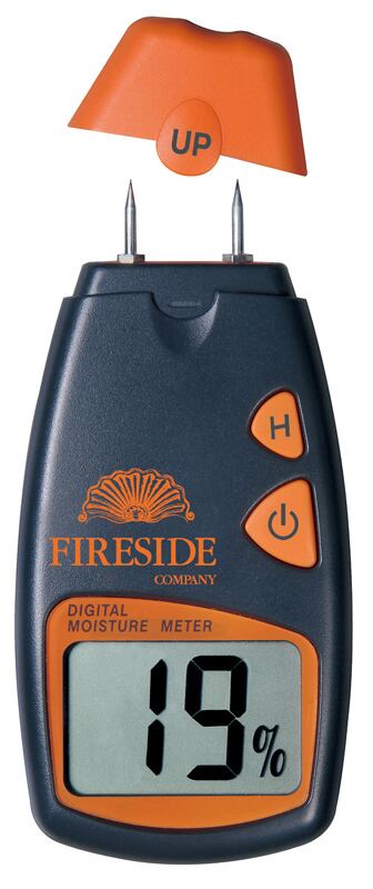 そこで大切なのが水分チェック。デジタル含水率計を使えば、簡単に薪の乾燥度が測れます。